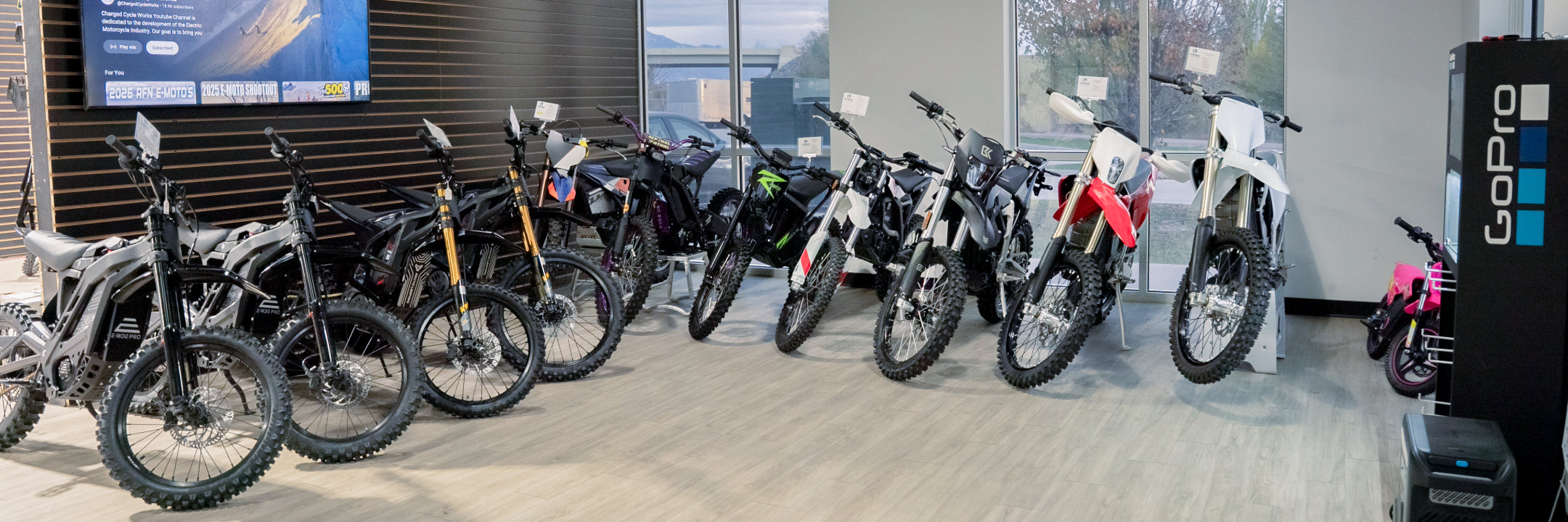 Step into the world of premium electric motorcycles and adventure e-bikes at Charged Cycle Works’ Salt Lake showroom. Whether you’re gearing up for off-road thrills or city-cruising in electric style, our floor is loaded with the latest machines, trusted brands, and expert guidance to help you ride smarter and faster.