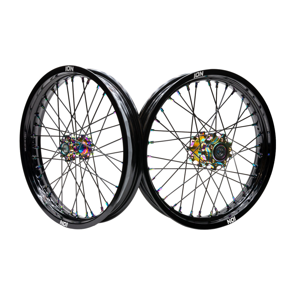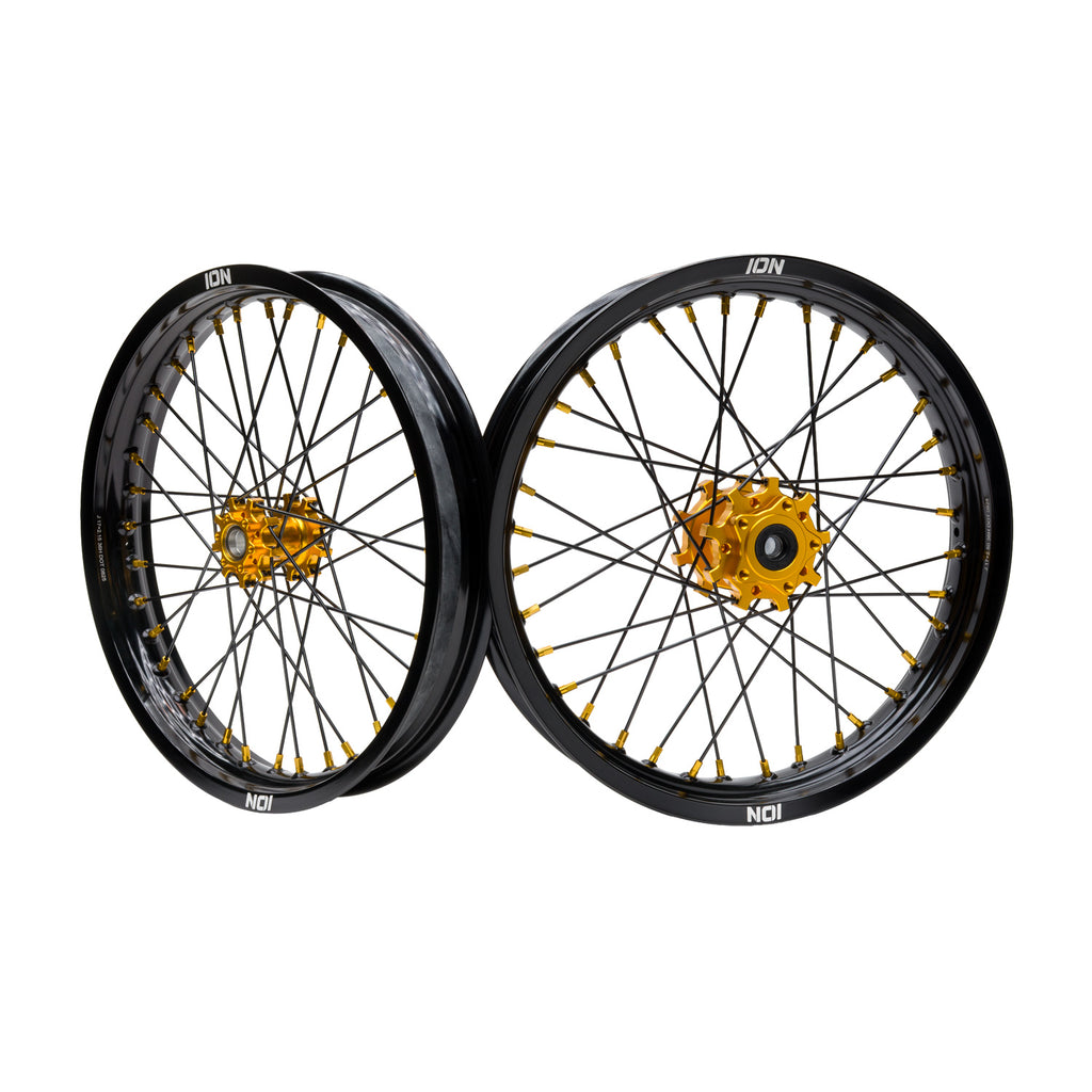 Each ION supermoto wheelset has the quality and performance you want, without breaking the bank, and they are IN STOCK and ready to ship immediately. Wheels with tires mounted have a 1-2 week lead time.