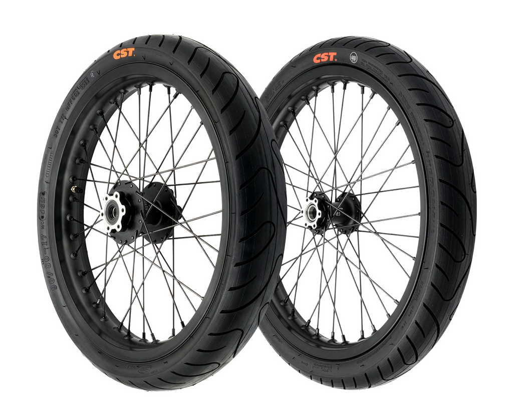 The Surron Light Bee - 17" OEM Supermoto Wheelset (also fits, E Ride Pro, and Ventus One) is compatible with Ventus One Plus bike models when using OEM Surron Light Bee Front Wheel Spacers (x2) and retaining the OEM Ventus One Plus Rear Wheel Spacers